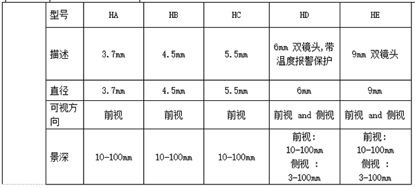 此外,該款產(chǎn)品有直徑3.7mm、4.5mm、5.5mm三種直視鏡頭,直徑6mm、9mm兩種雙鏡頭,讓您可以按需選擇,一機(jī)多管,以最優(yōu)的價(jià)格獲得最佳的搭配組合,以適應(yīng)多種工況環(huán)境。