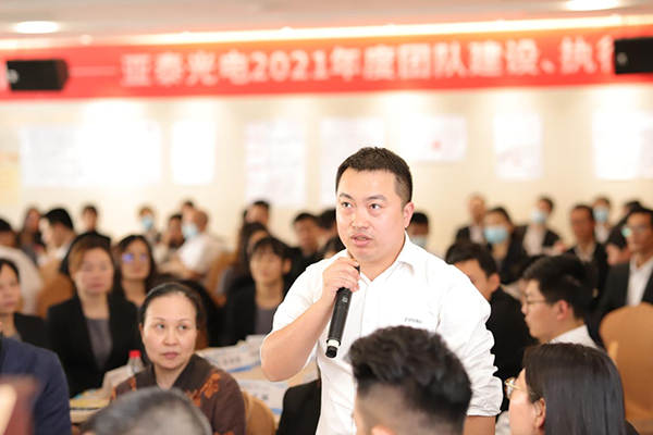 2021年12月10-11日為期兩天的亞泰光電2021年度全員團(tuán)隊(duì)管理、執(zhí)行力培訓(xùn)圓滿結(jié)束。本次培訓(xùn)邀請了廣東國元企業(yè)管理有限公司創(chuàng)始人李國林和尹冬元老師現(xiàn)場授課,公司領(lǐng)導(dǎo)及全體員工參加了本次活動(dòng)。