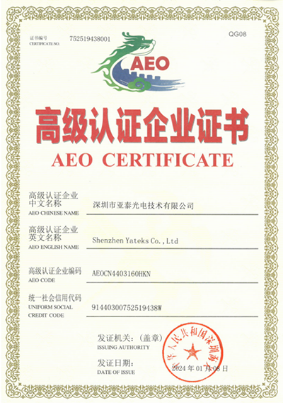 我們深知,提升企業經營管理水平不僅僅是為了應對海關的要求,更是為了更好地服務我們的客戶,為他們提供更高質量的產品和服務。因此,我們將持續優化生產流程,提高產品質量,確保我們的產品在國內外市場上始終保持領先地位。面對新的機遇和挑戰,我們深信只有不斷創新、不斷進取,才能實現我們的目標。我們將以海關AEO高級認證為新的起點,以更高的標準、更嚴的要求,推動企業的持續發展,為我國的經濟發展做出更大的貢獻。亞泰光電將以己經取得的海關AEO高級認證為契機,以更堅定的步伐走向未來,展現更大的作為。我們相信,在未來的道路上,我們將走得更穩、更遠。