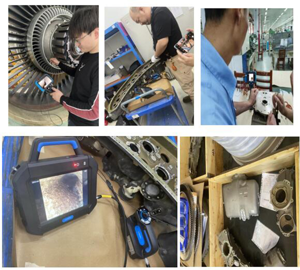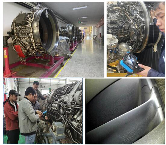 客機(jī)維護(hù)的工程師為提高巡檢和運(yùn)維的工作效率,同時(shí)檢查出發(fā)動(dòng)機(jī)內(nèi)部結(jié)構(gòu)損傷,提早發(fā)現(xiàn)和排查安全隱患,使用工業(yè)視頻內(nèi)窺鏡在大推力航空發(fā)動(dòng)機(jī),渦扇發(fā)動(dòng)機(jī),壓氣機(jī),發(fā)動(dòng)機(jī)葉片,空壓機(jī)葉片、燃燒室、油路和潤滑部位進(jìn)行探傷和狀態(tài)檢查。針對空間狹小和特殊工件的部位,只能用特定鏡頭進(jìn)行觀察測量。因?yàn)闇u輪發(fā)動(dòng)機(jī)獨(dú)特的內(nèi)部結(jié)構(gòu)為檢測工作帶來巨大的挑戰(zhàn),所以要求內(nèi)窺鏡的結(jié)構(gòu)牢固、性能穩(wěn)定,有非常強(qiáng)的導(dǎo)向能力、明暗可按需調(diào)整的照明、清晰的動(dòng)/靜態(tài)畫質(zhì)以及良好的操控便攜性。