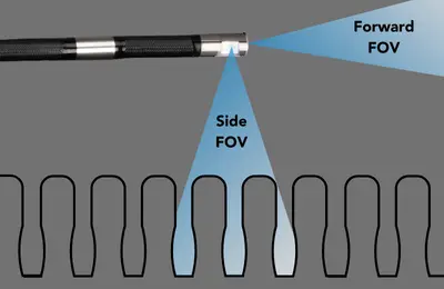 客戶首先使用前視攝像頭進(jìn)行檢查。這種視角使他們能夠快速而徹底地檢查整個部件。當(dāng)他們穿過波紋管時,他們會一絲不茍地尋找任何重大缺陷,例如凹痕、劃痕、拉伸區(qū)域或碎片。前視攝像頭對于此步驟特別有利,因?yàn)樗峁┝藦V闊的視野,使用戶能夠快速準(zhǔn)確地定位,工業(yè)內(nèi)窺鏡以進(jìn)行進(jìn)一步的詳細(xì)檢查。
